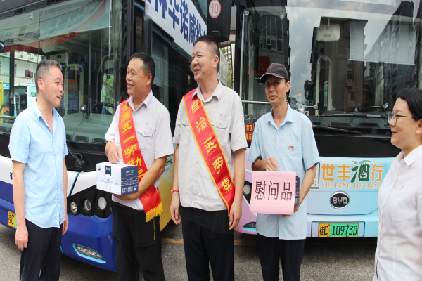 7月26日,桂林市总工会到轨道集团公交公司开展“送清凉”慰问活动,为一线驾驶员送去防暑降温的凉茶200余箱及一批绿豆、红糖,这样的关怀在酷热的盛夏为司机们带来丝丝凉意。慰问现场,桂林市总工会相关负...