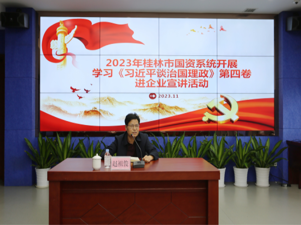 11月23日,桂林市国资委党委委员、副主任赵祖俊到集团公司开展党课宣讲,向企业党员干部职工宣讲《习近平谈治国理政》第四卷精神要义,并对基层企业改革发展进行指导。集团公司党委副书记刘波及领导班子、...