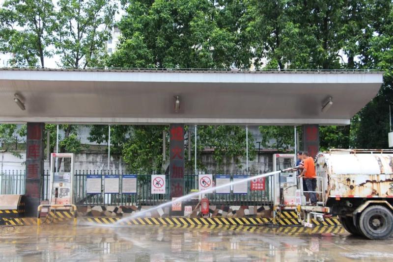 在此次汛情中,市区多处出现洪涝,桂林公交滨北车场、铁西车场、天鹅塘场站等地不同程度被水浸泡。21日上午,桂林公交铁西场站工作人员及其他场站、机关工作人员近百人到铁西场站开展清淤工作。工作人员采用“冲刷+铲扫”的方式进行清理,对地面进行冲刷,清除落叶、杂物等垃圾,配合水枪边冲边扫,将泥水排入下水道。随后,对被污染区域进行一系列消杀工作。目前,受洪水浸泡的场站已清淤完毕恢复正常使用。此外,随着市区道路洪水消退及清淤工作的推进,21日下午,桂林公交所有车辆全部恢复了营运(含区间、改道线路)。