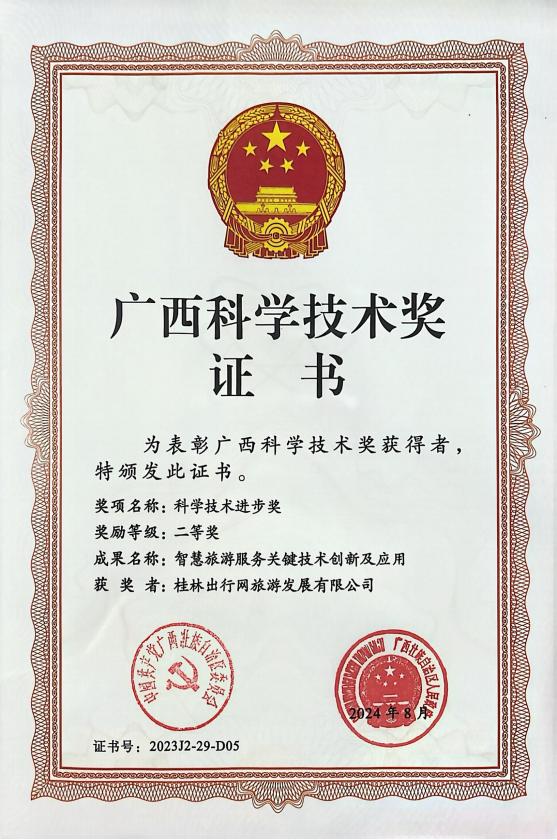近日,自治区党委、政府在南宁召开全区科技大会、广西科学技术奖励大会,揭晓了2023年度广西科学技术奖获奖成果名单。其中,bw必威西汉姆联官方网站桂林出行网旅游发展有限公司科技成果“智慧旅游服务关键技术创新及应用”荣获2023年度广西科技进步二等奖。