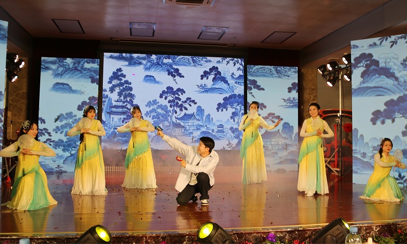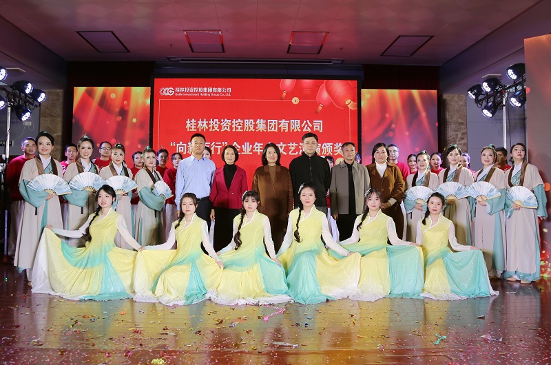 表彰结束后,“向新而行”企业年会拉开序幕。集团总部、轨道集团、鼎晟能源集团、鼎捷资产集团、桂林航空等12支参演队用嘹亮的歌声、优美的舞姿、欢乐的情景剧,演绎出了喜庆欢乐的节日氛围和国企人坚守岗位、“干”字当头的精神风貌,给观众带来一场视觉和听觉的盛宴。