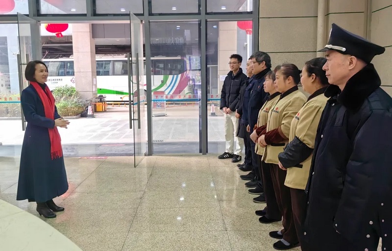 集团公司党委委员、监事会主席于丹凤到鼎捷资产集团鼎富大厦、桃江宾馆和鼎晟能源集团平山场站对一线职工展开慰问。她表示,感谢大家春节坚守岗位,去年大家齐心协力,攻坚克难,为集团发展贡献了力量,在新的一年希望大家满怀信心,继续发扬奋斗精神,开创工作新局面。