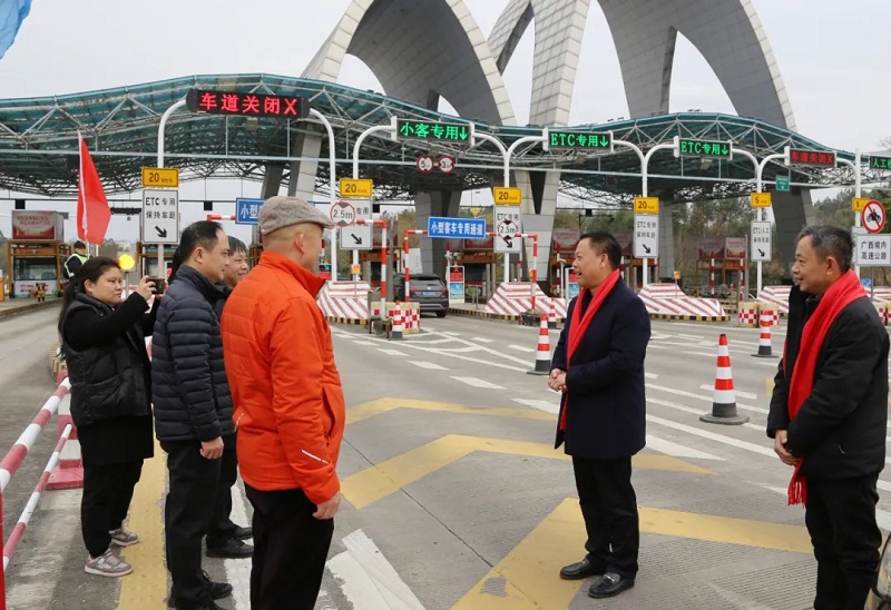 “新年好,大家辛苦了,给大家拜年!”在机场路桂林收费站,蒋平华来到收费岗亭慰问一线收费员,看到大家精神饱满,蒋平华十分高兴。蒋平华指出,大家要注意劳逸结合,保持良好的精神面貌,以优质、文明的服务擦亮机场路靓丽名片,为桂林城市文明形象加分。