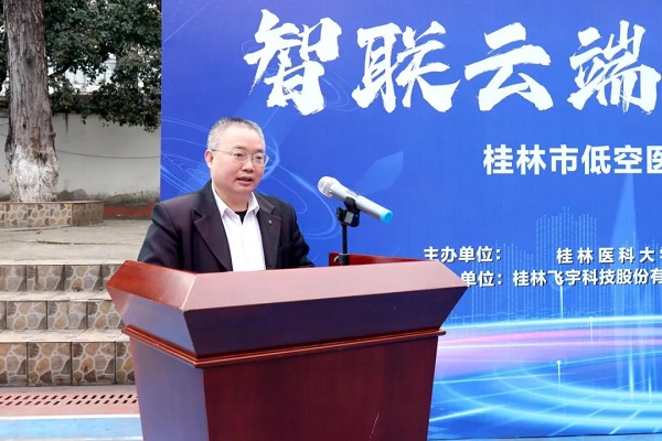 桂林市卫健委副主任徐召霞、桂林医科大学第二附属医院副院长邓立东、bw必威西汉姆联官方网站低空运营公司及桂林飞宇科技公司相关负责人出席试飞仪式。