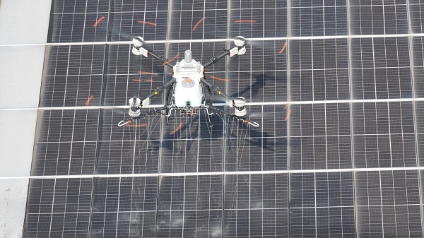 本次使用的无人机配备了先进的多光谱污染分析技术,它像拥有一双“火眼金睛”,精准识别光伏组件表面的灰尘、鸟粪等各类污染物,再结合动态路径规划算法,实现了清洗作业不留死角。通过测算,与传统人工清洗相比,其单日作业效率提升了3倍以上。