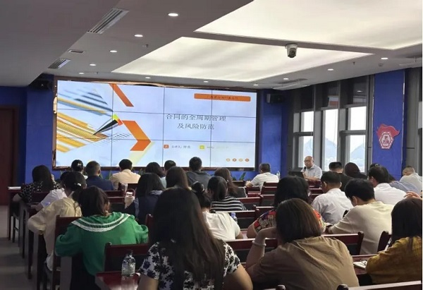 本次培训特邀广西卓合律师事务所钟勇律师主讲。钟律师通过典型案例分析与条款解读,系统阐释了合同全周期管理中的法律风险防控要点,涵盖合同起草、履行、争议解决等环节,深入剖析了常见法律陷阱及应对策略。培训内容紧密贴合企业实际需求,将《民法典》条文转化为实操工具,助力业务规范开展。参训人员全程专注聆听,积极互动交流,现场学习氛围浓厚。