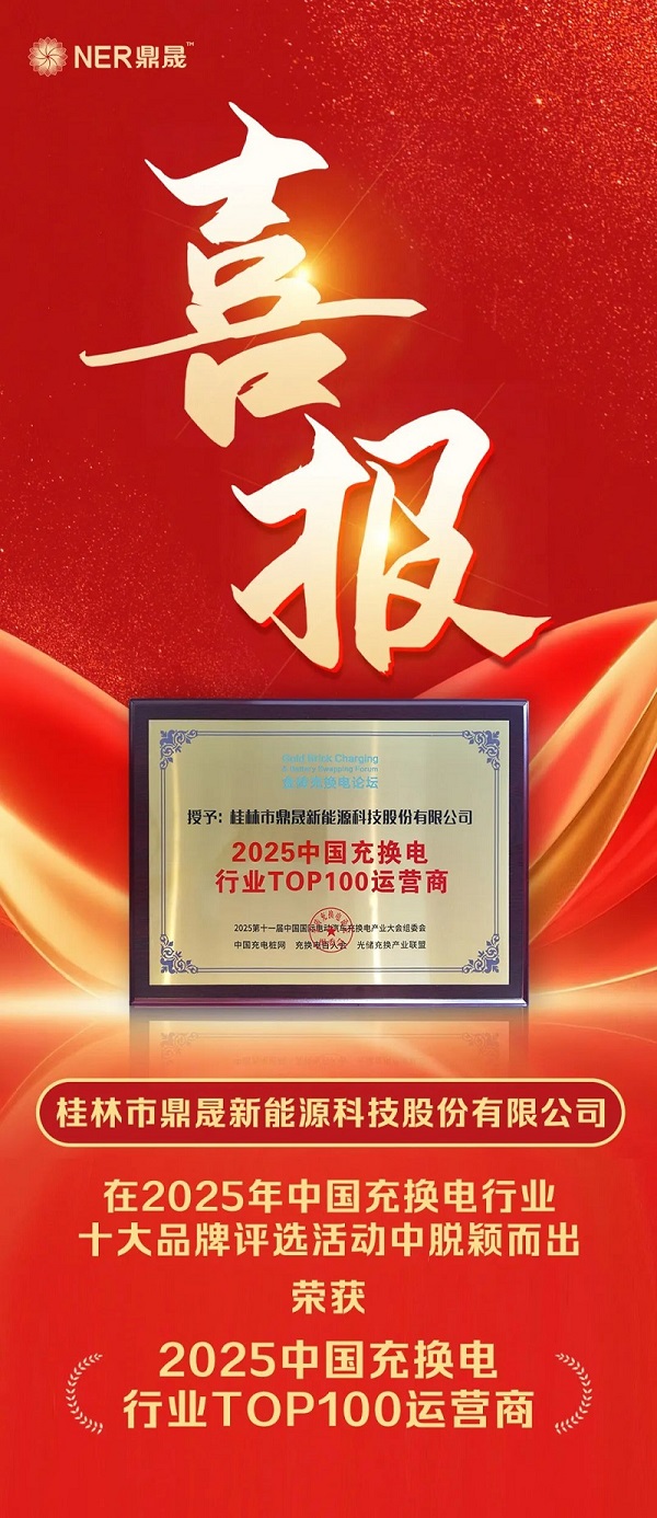 喜报 | bw必威西汉姆联官方网站鼎晟新能源公司荣获2025中国充换电行业TOP100运营商